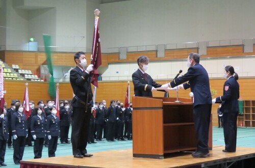 第1部の式典では、長年茅ヶ崎市消防団員として活動していただいている方や、各種大会で優秀な成績を収められた分団への表彰、佐藤市長の式辞がありました。また、神奈川県知事を始めとし、数多くのご来賓の方々からご祝辞をいただきました。