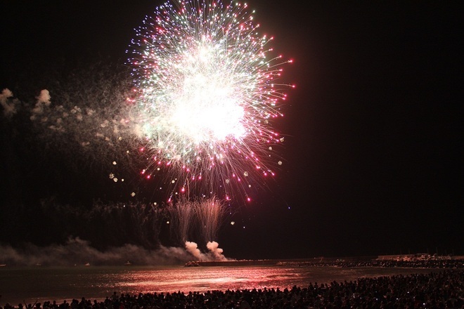 サザンビーチちがさき花火大会、えぼし麻呂の花火