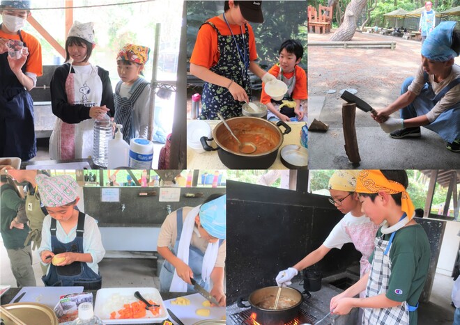 猛暑の中、熱中症対策を行いながら班ごとに協力し、どの班も美味しいカレーを作ることができました。