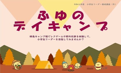 小学生リーダー養成講座(夏・宿泊・冬) 令和7年度小学生リーダー養成講座(冬) 2026年1月24日(土曜日)(事前研修)・31日(土曜日)(野外炊事)に市内小学校5・6年生を対象に「冬のデイキャンプ(小学生リーダー養成講座(冬)」を実施します。お申込みは12月1日(月曜日)から!皆様ぜひ奮ってご応募ください! 宿泊キャンプ~学ぶ、遊ぶ、食べる!~小学生リーダー養成講座(宿泊) 9月6日(土曜日)、9月13日(土曜日)~14日(日曜日)、市内小学校5・6年生を対象にして実施した『宿泊キャンプでアウトドア体験!!(小学生リーダー養成講座(宿泊))』の様子をまとめました。 令和7年度小学生リーダー養成講座(夏)の様子 6/22(日曜日)、6/28(土曜日)に市内小学校5・6年生を対象に『夏のデイキャンプ』(小学生リーダー養成講座(夏))を実施しました。活動の様子を写真とともにまとめました。是非ご覧ください。 令和6年度小学生リーダー養成講座(冬)の様子 1/25(土曜日)、2/1(土曜日)に市内小学校5・6年生を対象にした『冬のデイキャンプ』(小学生リーダー養成講座(冬))を市役所の会議室と「ちがさき柳島キャンプ場」で実施しました。活動の様子を写真とともにまとめました。是非ご覧ください。 トピックス小学生リーダー養成講座(冬)12月1日(月曜日)から募集開始予定!令和7年度ジュニアリーダー養成講座実施中インリーダー研修 関連団体・協力団体 過去の開催の様子 R7年度(夏)の様子 R6年度(宿泊)の様子 R6年度(冬)の様子 募集ページ 宿泊 募集ページ 夏 募集ページ(注)現在は募集終了 冬 募集ページ(注)12月1日から募集開始予定 このページに関するお問い合わせ 教育推進部 青少年課 育成担当市役所分庁舎3階〒253-8686 茅ヶ崎市茅ヶ崎一丁目1番1号電話:0467-81-7227 ファクス:0467-58-4265お問い合わせ専用フォーム