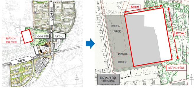 - 面積 約4,125平方メートル(旧グラウンドより約1,175平方メートル減少)