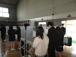 生徒からは、「実際の選挙に使われている物を使えて良かった。」「投票は意外に簡単だった。」等の声があり、選挙への興味や関心を持ってもらうことができました。
