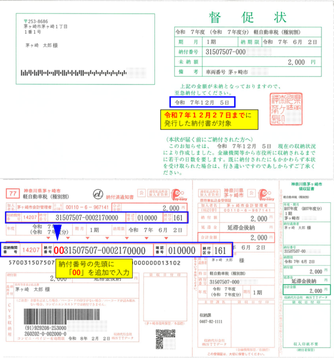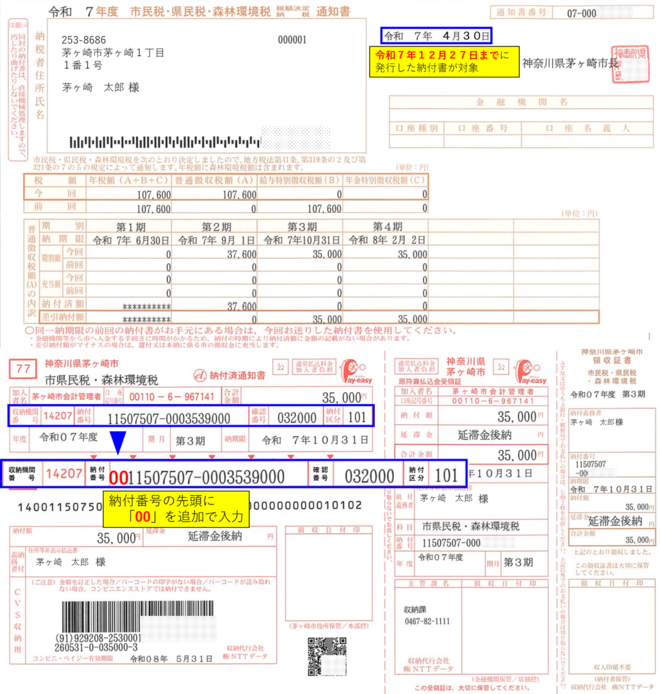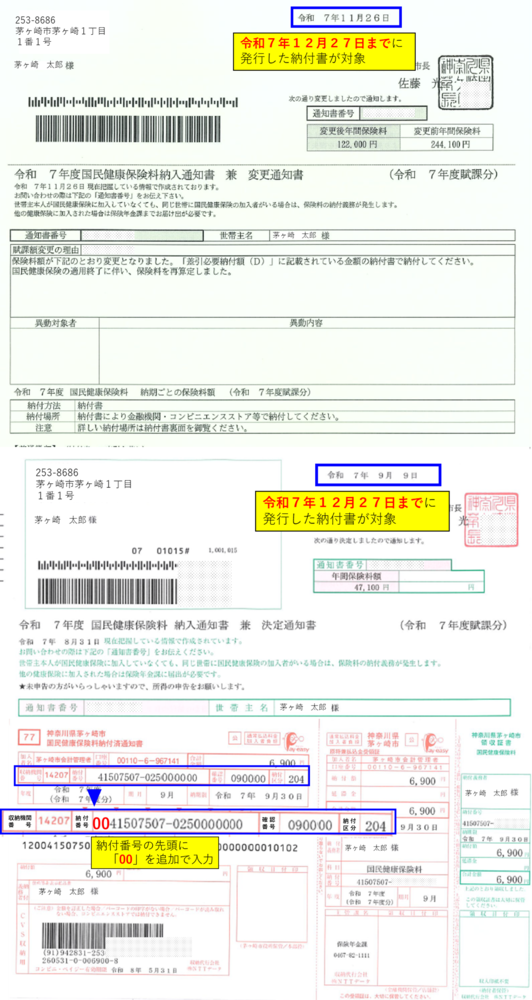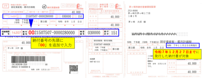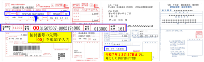 対象となる納付書(令和7年12月27日までに発行された旧システムの納付書)
